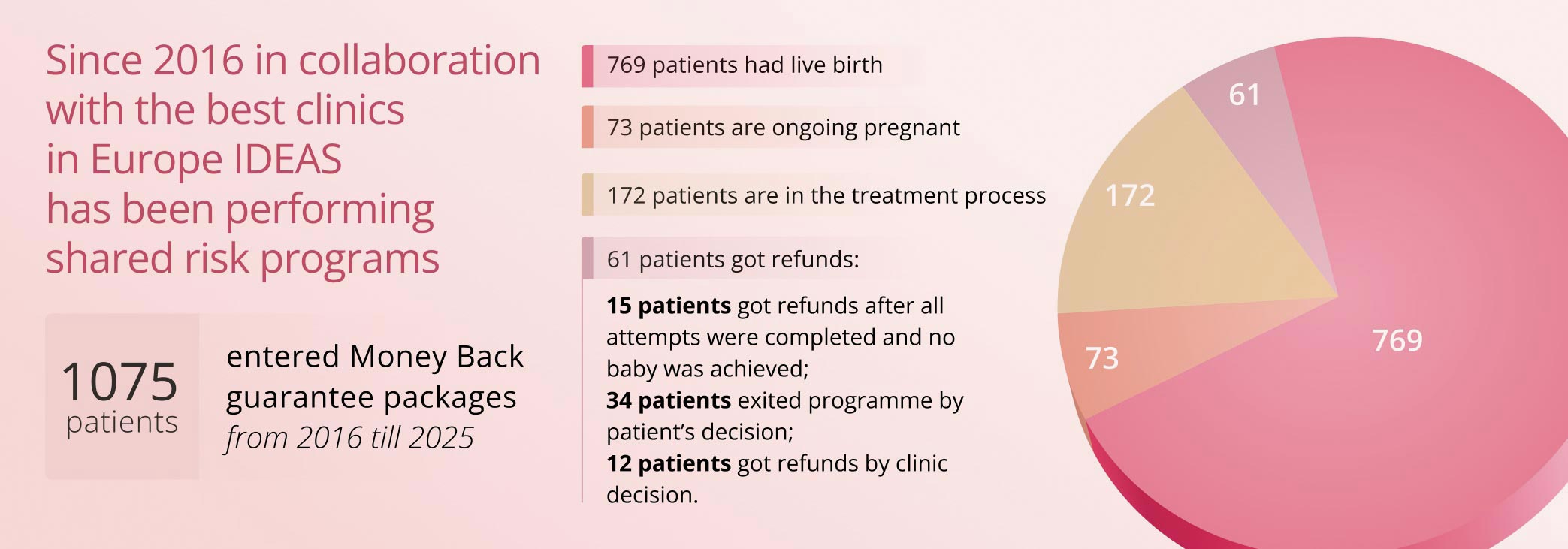 - Wenn innerhalb der begrenzten Anzahl von Versuchen, die im Paket enthalten sind, kein Baby geboren wird, erstatten wir Ihnen 100 % der für das Paket bezahlten Kosten;