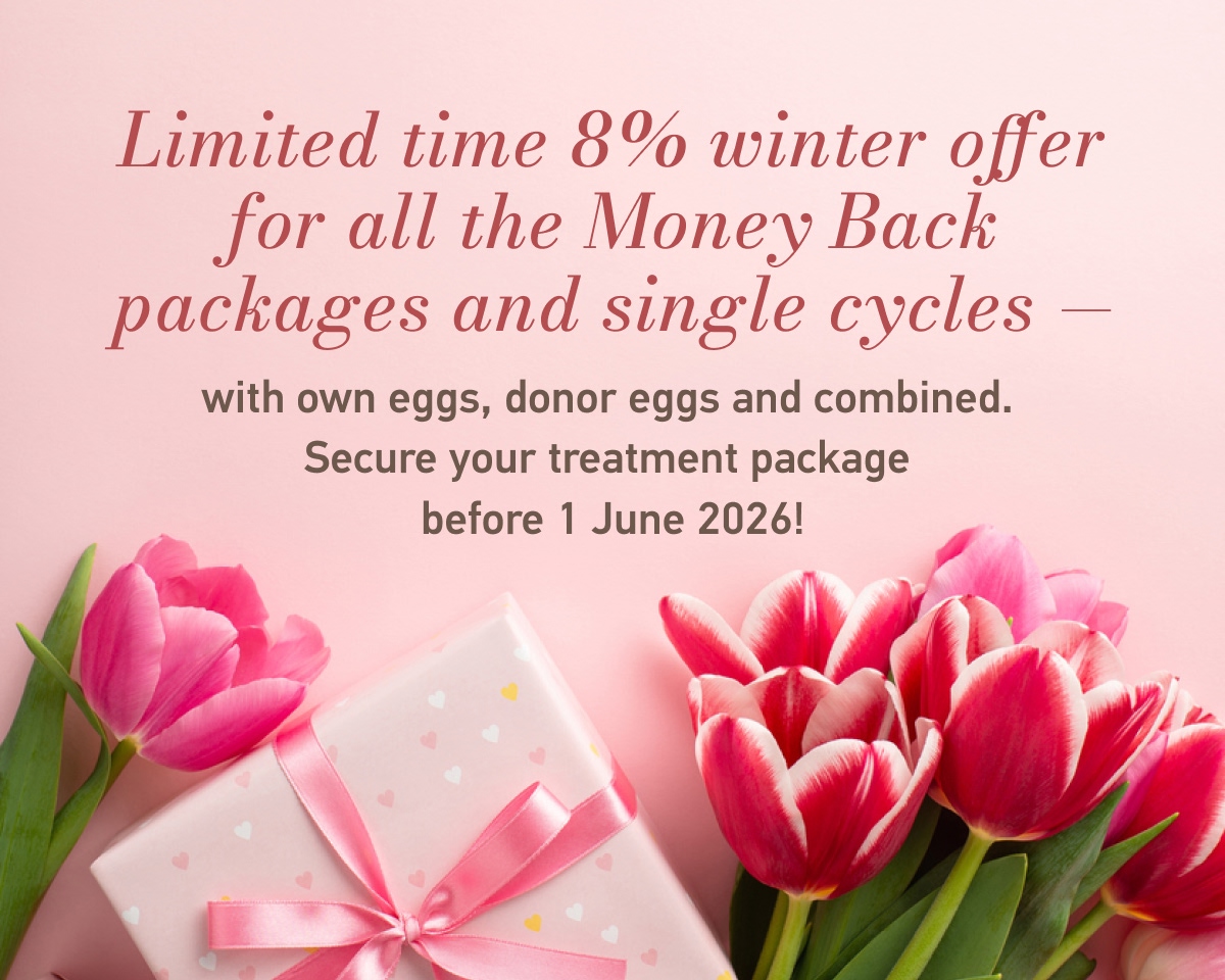 We are always seeking new ways to make your journey to parenthood more efficient, confident and personalized. To support you even more we are announcing a 8% discount on ALL our packages with 100% Money Back guarantee of Live Birth and Single Cycles, whether you are using your own egg or donor egg.