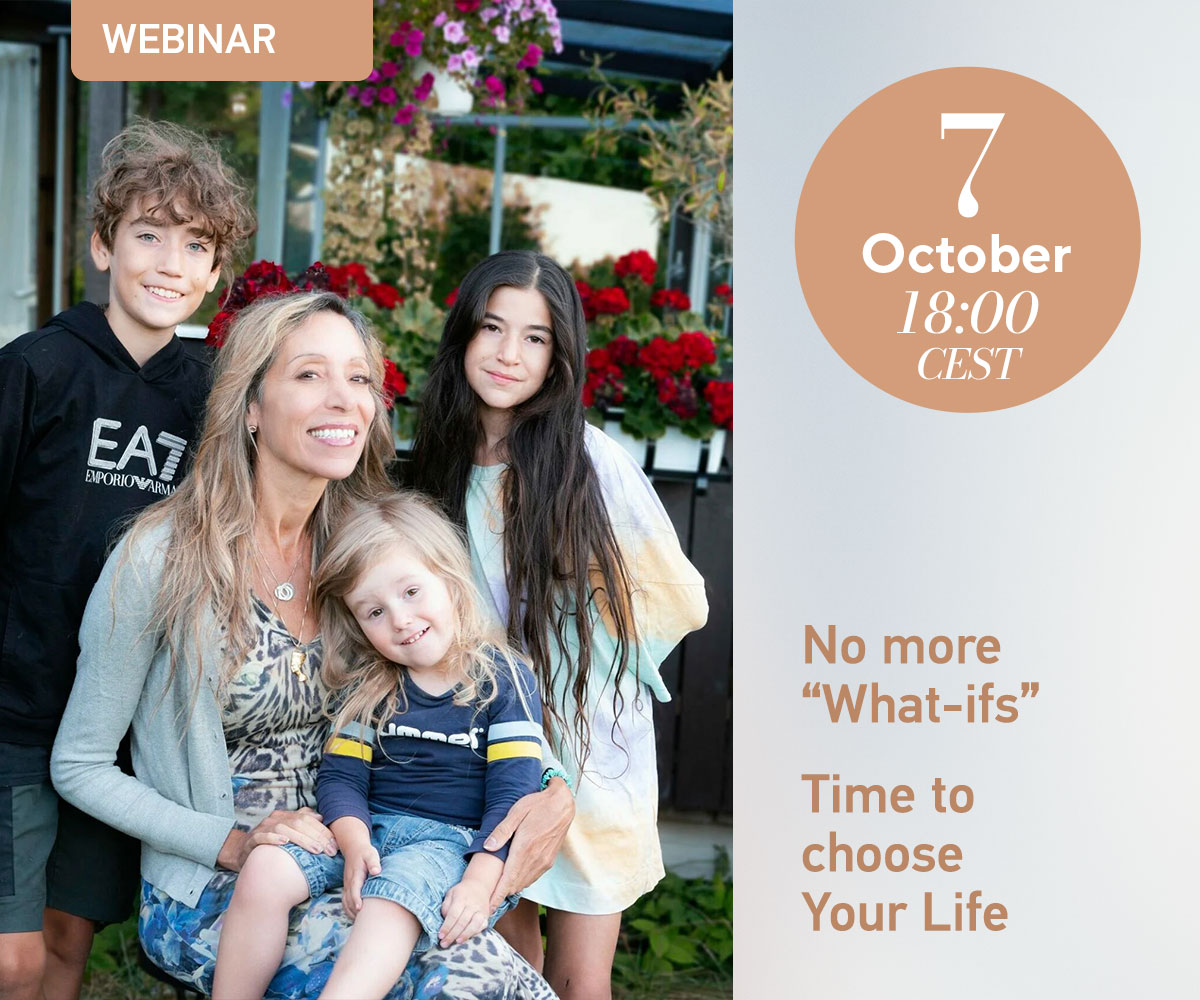 Join our webinar on 7 October at 18:00 CEST to meet Therése Neaimé — our dear former patient and a solo mother of four amazing children, conceived in different ways and at different ages: two children at the age of 39 and 42, through natural pregnancies with a partner and her own eggs, then two children at the age of 47 and 53, through egg and sperm donation in O.L.G.A. Clinic.