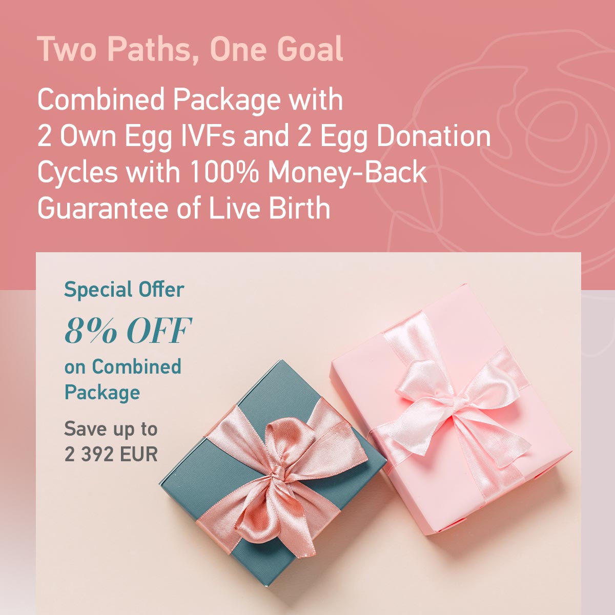 There are packages for treatment with own eggs and donor eggs. You can find description and the cost of each 100% Money Guarantee package here →